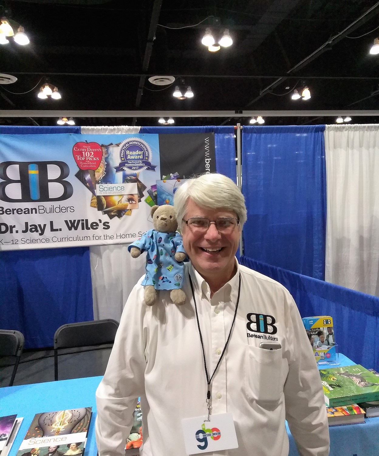 Well, one of the first talks that my friend and I went to was by Dr. Jay Wile. He has written lots of science books from elementary to high school level, including biology, chemistry and physics books. He said he likes to pull pranks (practical jokes) and specializes in chemistry. I looked through his biology book in my library, and after meeting him and reading his book, I think he is ALMOST as funny as I am.