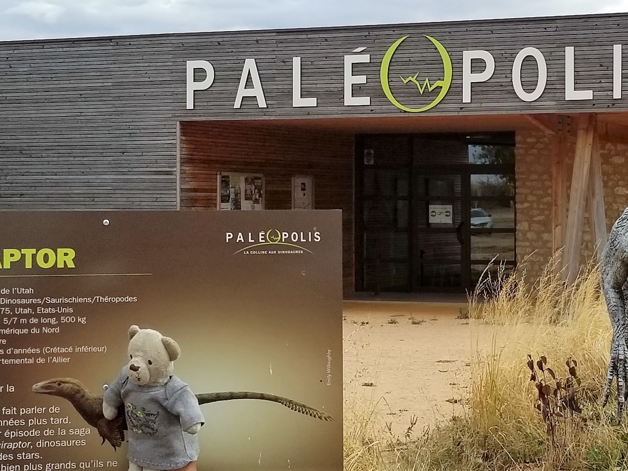 While I was in France, I went to a dinosaur park called Paléopolis. There, it was more interactive than the last dinosaur park. When you entered the park, there was a large Velociraptor on top of a truck. It felt like it was going to eat me, so I watched it out of the corner of my eye. There were a few canopies and some fossil models were buried in the sand there. The weather was nice, so I was fine walking around. Under the canopies, there were the tools that scientists would use during an expedition. Sand was everywhere and there were some tools for little kids to use so that they could go on their own practice dig. Near the picnic area, there was an obstacle course; so that kids would have something to do while food was being set up.